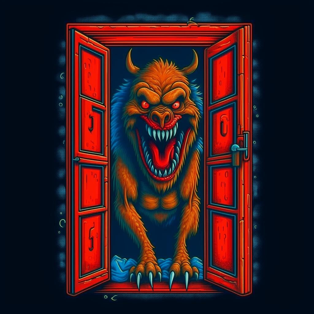 Все дети боятся темноты, но не все знают, что в ней скрывается. Андрей был одним из тех, кто не верил в чудовищ, живущих под кроватью или в шкафу. Он считал себя слишком взрослым для таких глупостей и всегда спал без ночника. Однажды, когда его родители уехали на выходные, он решил устроить вечеринку для своих друзей. Он пригласил несколько человек из своего класса и купил пиццу, чипсы и колу. Он думал, что это будет самая крутая ночь в его жизни. Вечеринка началась хорошо. Дети смеялись, разговаривали, играли в видеоигры и смотрели фильмы ужасов. Андрей чувствовал себя королем и гордился своим домом. Он не замечал, что из его шкафа иногда доносились странные звуки: скрип, шорох, стук. Он думал, что это просто ветер или мыши. Он не обращал на них внимания. Но когда наступила полночь, все изменилось. Вдруг шкаф распахнулся с громким треском, и из него выскочило чудовище. Оно было ужасно: огромное, черное, покрытое шерстью и шипами. У него были красные глаза, острые клыки и длинные когти