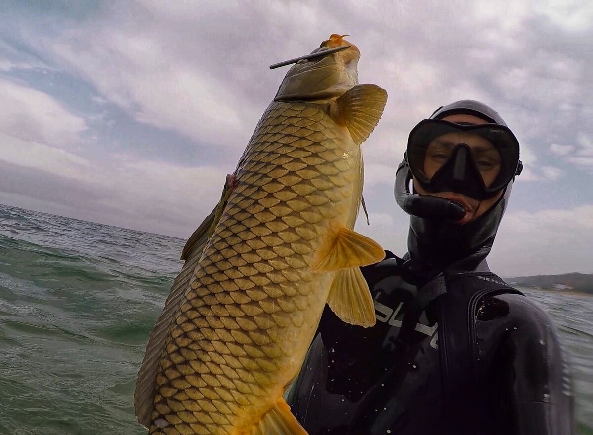 Сазан считается пресноводной рыбой, но он прекрасно себя чувствует и в Каспийском море. Причём встречается не только в сильно опресненном Волгой северном Каспии, но и в южных соленых водах. Нахождение сазана в соленой морской воде и питание морскими обитателями придаёт особенные гастрономические качества этой рыбе и соответствующую ценность в сравнении с пресноводными особями. О подводной охоте на сазана в северном Каспии и дельте Волги лучше расскажут другие, а я остановлюсь на особенностях охоты на дагестанском побережье Каспийского моря. Весь смысл этой охоты основан на нерестовой миграции сазана в конце весны начале лета. Сазан в поисках небольших рек движется вдоль берега с севера на юг. В ходе этого движения он максимально прижимается к берегу, огибая рельеф и искусственные препятствия по глубине в районе 1 метра. Охотники ищут удобные места на этом направлении где благодаря рельефу вероятность попасть на путь движения рыбы наиболее высока. Дальше дело выдержки - охотник ныряет