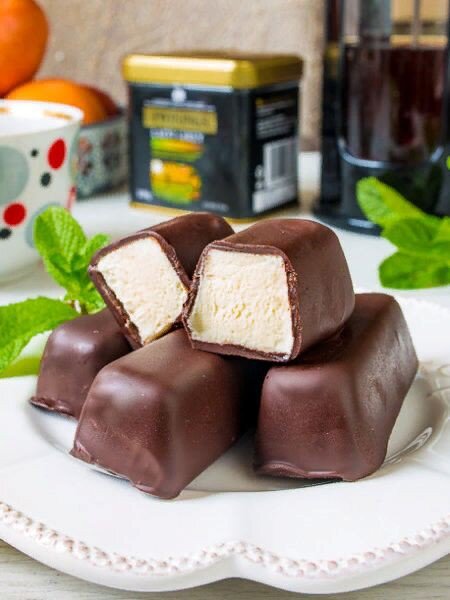 Ингредиенты: Творог - 300г Сливочное масло - 100г Сахарная пудра - 50г Ванильный сахар Шоколад - 85г Растительное масло - 10мл (Ингредиенты рассчитаны на 5 сырков) Пошаговый рецепт приготовления: Для начала хорошенько разминаем творог, затем добавляем сливочное масло, за ним ванильный сахар, сахарная пудра и перемешиваем. С помощью кондитерского мешка (можно сделать из пакета: массу поместить в пакет и на уголке пакета сделать отверстие по размеру сырка) выдавливаем массу и отправляем в морозилку на 30 минут. Теперь сделаем шоколадную глазурь! Для этого расплавляем шоколад и смешивает с растительным маслом. Далее все сырки достаем из морозилки и для удобства насаживаем на шпашки и окунаем в шоколадную глазурь. Отправляем застывать на 10 минут.