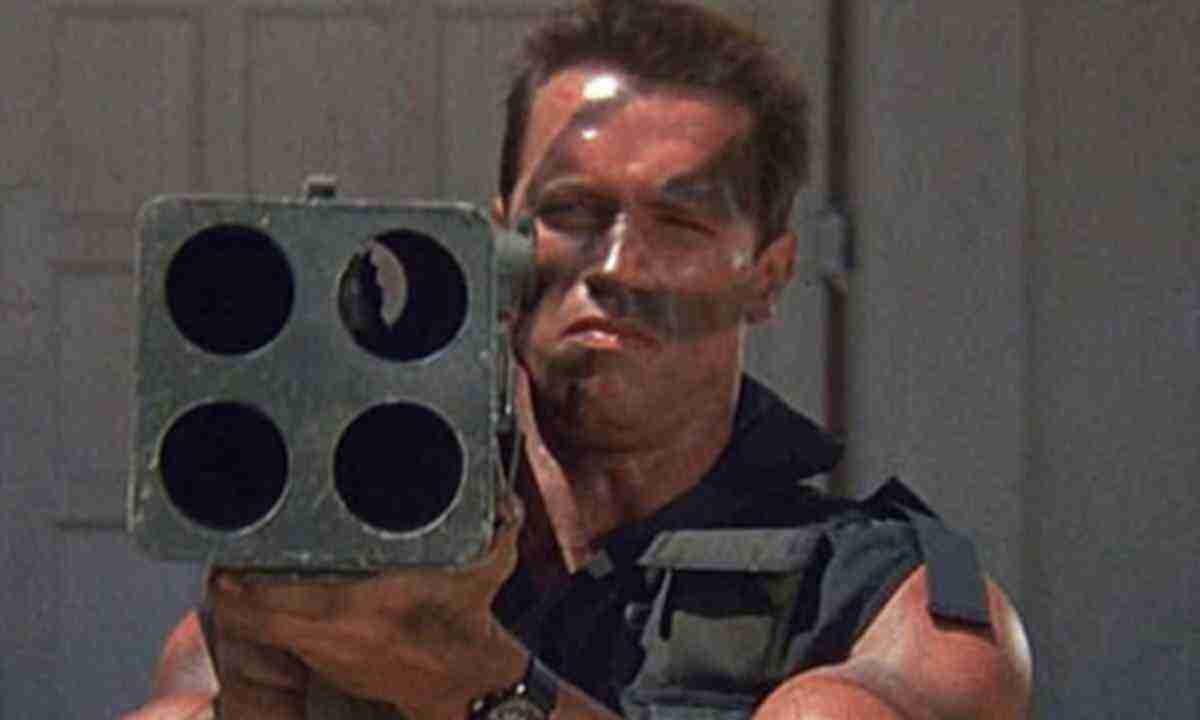 Эх, времена видеосалонов... Скрипящие стулья из ближайшего ДК, телевизор "Садко" с видеомагнитофоном, который зажевывало в самом неподходящем моменте (когда не дох сам Ц380Д, сделанный во Львове), немецкое кино "в довесок" после сеанса... Хотя мы тогда больше интересовались китайским ногомашеством и руконожеством, ну и, естественно, фильмами наподобие сегодня обсуждаемого. Если честно, навскидку из него не помнил ничего, кроме вот этого сооружения, из которого Арни умудряется стрелять дважды из одного ствола: Увы, в фильме снят не настоящий реактивный огнемет М202 хотя бы с "огражданом", а кустарная поделка. Хотя оригинал и был списан Пентагоном еще во времена Вьетнама, для фильма слепили только его отдаленное подобие. Дальше, однако, интереснее. На дворе 1985 год, так что это - однео из первых появлений Desert Eagle в кино: Справедливости ради, это был еще "неправильный" DE: патрон .50АЕ, с которым однозначно ассоциируется этот пистолет, разработали только через 3 года. Здесь же - обы
