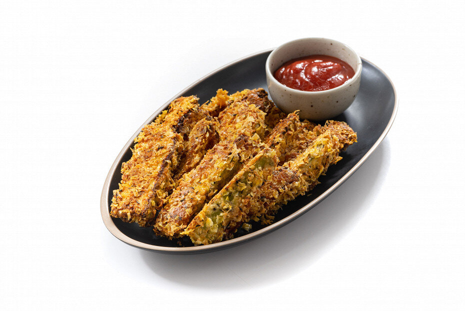 Молотый черный перец по вкусу ИНСТРУКЦИЯ ПРИГОТОВЛЕНИЯ 45 МИНУТ РАСПЕЧАТАТЬ 1.Подготовить все ингредиенты. Разогреть духовку до 200 градусов. 2.Противень смазать растительным маслом. 3.Кабачки вымыть, отрезать кончики и нарезать брусочками. 4.Пармезан натереть на мелкой терке. 5.В большой миске смешать пармезан, панировочные сухари, итальянские травы, 0,5 чайной ложки чеснока, 0,25 чайной ложки соли и перец. 6.В другую миску всыпать муку, добавить к ней по 0,5 чайной ложки молотого чеснока и соли. 7.В третьей миске взбить 1 яйцо венчиком до легкой пены. 8.Небольшими партиями обвалять кабачки сначала в муке, затем окунуть в яйца, после чего обвалять в сухарях. 9.Выложить кабачки на противень, слегка сбрызнуть маслом. 10.Отправить кабачки