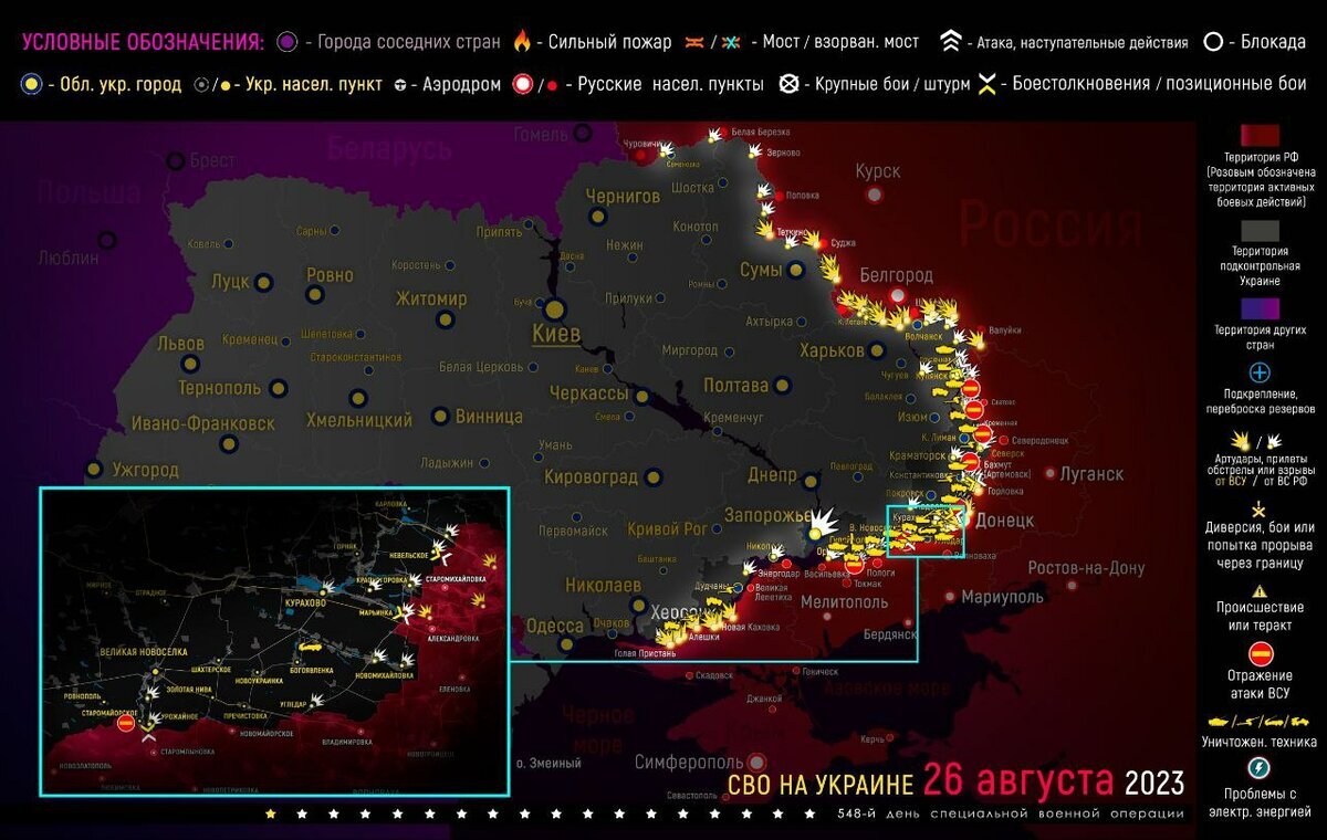 Карта военных действий и ситуация на фронтах вечером 26 августа