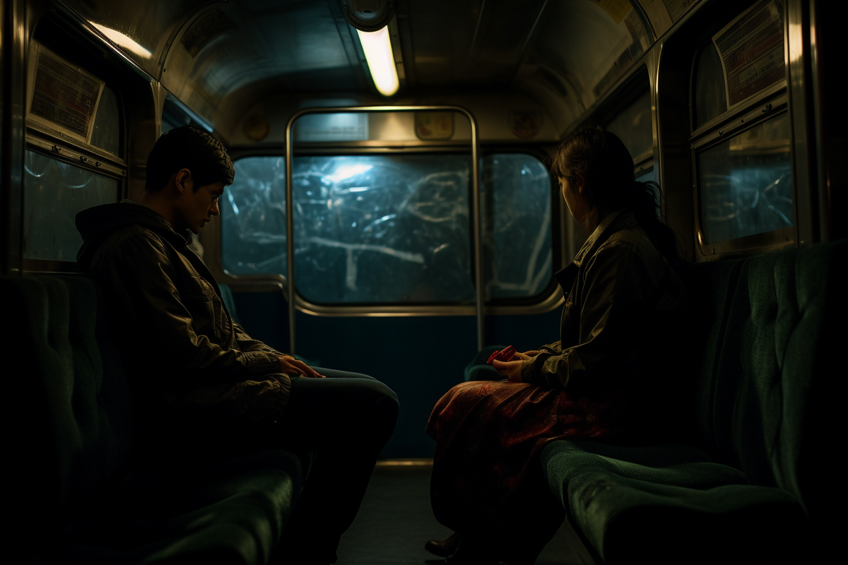 Яша сидел в последнем вагоне метро, погрузившись в свои мысли. Станции сменяли друг друга, как кадры в пленке старого фильма, но его взгляд был прикован к двери между вагонами. Словно внезапный скачок напряжения, вагон затормозил, и все огоньки в салоне погасли одновременно. Он взглянул на свои часы. Полночь. "Какая ирония," подумал он. Люди в вагоне начали шарить в своих сумках и карманах в поисках телефонов. Экраны мобильных телефонов начали зажигаться один за другим, словно светлячки в ночи. Вскоре пассажиры поняли, что интернета нет, и затихли, ожидая. Сквозь мрак прозвучал звук открывающихся дверей. В вагон вошла девушка, а в потоке света, проникшего из туннеля, стал виден её миниатюрный рост. Она остановилась, разглядывая пассажиров, и выбрала место рядом с Яшей. "Странная ночь, не так ли?" — пробормотала она, несмотря на глубокую тишину вокруг. "Меня зовут Алиса. А вы?" "Яша," коротко ответил он, но что-то в её глазах заставило его задуматься. Они были не просто красивы, они сло