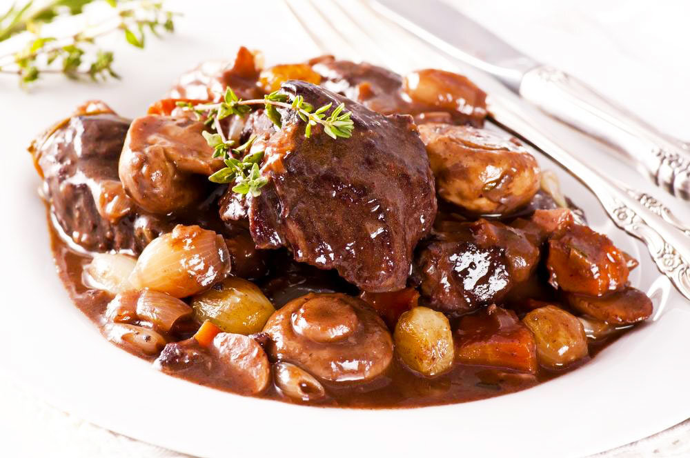 Вот один из рецептов блюда из мяса: Говядина по-бургундски Ингредиенты: * Говядина - 500 г * Лук репчатый - 2 шт. * Масло сливочное - 1 ст.л. * Мука пшеничная - 1 ч.л. * Вино красное сухое - 200 мл * Бульон говяжий - 300 мл * Лист лавровый - 2-3 шт. Приготовление: 1. Мясо нарезать небольшими кусочками и обжарить на сливочном масле до золотистой корочки. 2. Добавить нарезанный лук и обжаривать вместе с мясом до мягкости лука. 3. Всыпать муку и хорошо перемешать. 4. Влить вино и дать ему выпариться наполовину. 5. Затем добавить бульон, лавровый лист, посолить и поперчить по вкусу. 6. Тушить на медленном огне до готовности мяса (около 1,5 часов). 7. Готовое блюдо подавать горячим с гарниром по вашему выбору. Понравился рецепт? Подпишись на канал! Несгораемый промокод на вяленое мясо от бренда ЧипСтейк со скидкой 300 рублей каждому новому подписчику канала. Чтобы получить пиши в комментариях или в телеграм "+" или "хочу скидку". Отправим всем! Интернет магазин вяленого мяса производи