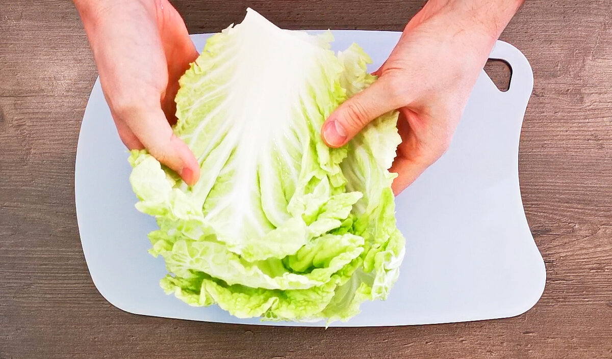 Добрый день дорогие друзья, сегодня по секрету, поделюсь с вами умопомрачительным рецептом! Ведь все гениальное просто! Я уверен, все кто приготовит это блюдо из пекинской капусты по моему рецепту, будут просто в восторге! Я очень люблю пекинскую капусту! Предпочитаю ее в самых разных вариантах: свежую в салатах, жаренную, запеченную, начиненную, вареную и квашенную! Пекинская капуста является полезным продуктом питания, не зря корейцы ее просто обожают! Для ценителей рецептов из пекинской капусты, в конце статьи прикрепляю видео еще на ТРИ РЕЦЕПТА из пекинки! Сложно пройти мимо них! Все прекрасны и очень вкусны, обязательно посмотрите! Для приготовления этого вкусного блюда из пекинской капусты, я беру её листья 6 - 7 шт. Капусту тщательно мою, немного обсушиваю и отрезаю внизу самую жесткую часть у листа. Далее беру кухонный молоток и слегка отбиваю листья пекинской капусты, чтобы прожилки стали мягкими и в них легко было заворачивать начинку. Затем готовлю саму начинку. Беру одну