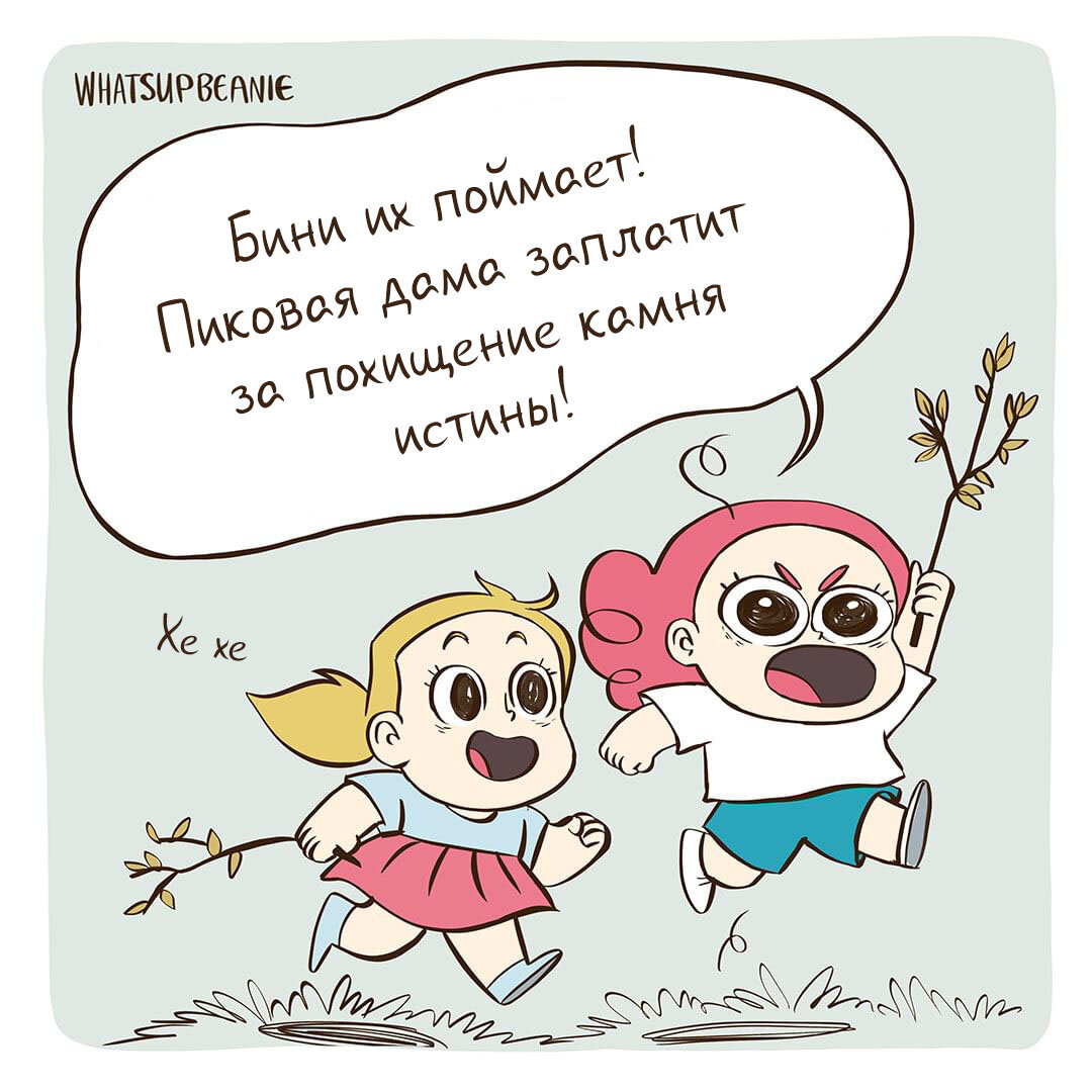 Если честно, то я думала, что опоздаю со статьей. Проснувшись, я обнаружила, что мой кофе закончился, а денег на его покупку свободных нет. Так что утро началось со всех пяти стадий принятия ситуации, варки какао и заваривания чая. Сейчас я даже думаю, что возможно это к лучшему. Попробую временно отказаться от этой божественно-горькой и ароматной жижи. Заодно посмотрю как это повлияет на мой сон и общее состояние. И если все будет хорошо, то вместо кофе я скорее куплю витамины, потому что скоро осень и если вовремя не подловить момент, я опять всю зиму проведу с болью в горле. Да и сонливость постепенно усиливается, а значит, что иммунитет уже буянит. Однако, я очень соскучилась по Бини, давно ее не выпускала, так что решила всех порадовать и опубликовать комиксы с ней с утра пораньше! Кстати, а вы играли в такие игры в детстве? Какую нечисть вызывали вы, а потом пугались каждого шороха? Я точно помню Золушку, Пиковую даму и Кровавую Мэри (не помню в чем отличия), матных и сладких
