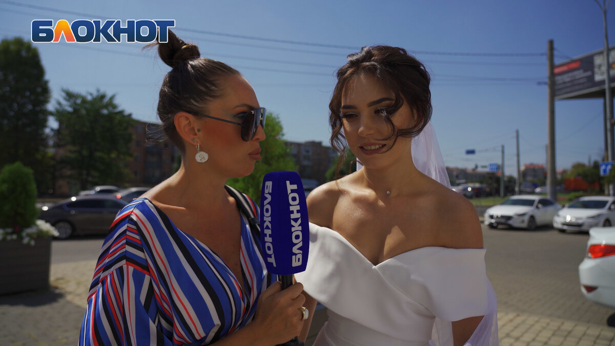 В Краснодаре к 27 августа у ЗАГСов города – ажиотаж. Белые платья, сияющие лица, витающая в воздухе любовь и бесконечное количество улыбок – это она, свадьба! И если женитьба в современном мире по-прежнему актуальна, то романтики стали более практичными и предложение своим возлюбленным делают через…Госуслуги. Но есть и исключения. Журналисты «Блокнота Краснодара» в минувшую пятницу прогулялись возле самого популярного среди молодоженов дворца бракосочетаний под названием «Екатерининский зал» и пообщались с новобрачными, узнав их истории любви. Каждая из этих историй – уникальна и неповторима. Видео с женихами и невестами (уже мужьями и женами): «Предложение сделал чуть меньше года назад. Фамилию его беру», - улыбается встреченная невеста по имени Настя. А жених – тоже тут как тут. Не скрывая счастливой улыбки. Красотка Настя «Теперь я официально – жена!», - кричит красавица-невеста, не сдерживая эмоций. Александр и Алина Александр и Алина тоже теперь могут смело называться счастливыми