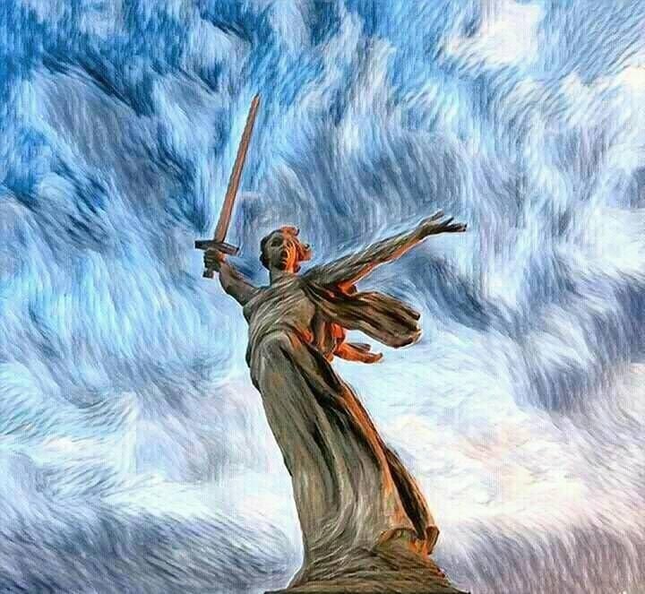 Официанты в крахмально-белых рубашках катили на тележке запечённую из множества мужских и женских тел фигуру, в виде знаменитого монумента на Мамаевом кургане - Родина-мать. Только замахивалась она на незримых врагов не тяжёлым мечом, а мужским половым органом в состоянии эрекции. Это была такая креатура Макса, можно сказать метафора того, что Родина хрен ложила на всех нас. Всё-таки художественное мышление в Максе умерло не совсем. Глаза у Родины отсутствовали, символизируя, что она слепа к своему народу и от того безучастна в его судьбе. Тело её покрылось коричневой поджарой корочкой, источавшей сок, стекающий жировыми ручейками.