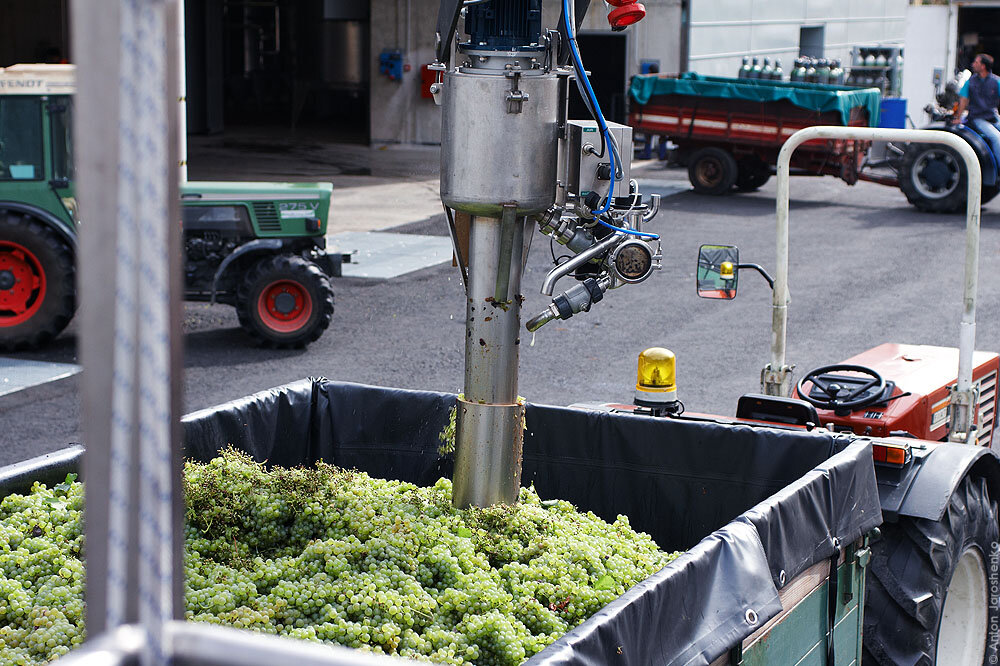 Винодельня Vivallis, находится в городе Роверето, в Трентино соответственно. Пойдем посмотрим как делают неплохое итальянское вино в промышленных масштабах. У винодельни есть собственные виноградники, честно сказать не помню какая площадь, но очень много. А так же виноград покупают у местных владельцев виноградников. Производство большое, виноград лишним не бывает. Вот приехал один такой фермер. Сначала трактор с виноградом взвешивают. Вообще сейчас сезон сбора урожая и винодельня работает по полной, весь день, постоянно приезжают тракторы и разгружают виноград. Приезжают и днем и ночью, в это время производство работает круглосуточно. Здесь берут пробу на сахар. Хороший, сладкий виноград. Чем виноград слаще, тем он дороже, соответственно фермер, у которого виноград слаще, получит за него больше. Виноград сгружают в огромные емкости в соответствии с сортом. Дальше он идет на линию производства. С этого пульта происходит управление линией разгрузки. Это емкость, в которую рузгружают вин