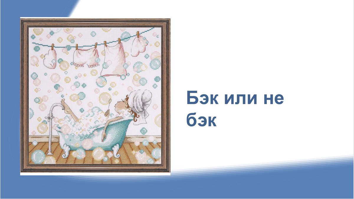 Друзья, достаточно часто в обзорах и отзывах не схемах встречаю комментарии относительно back-stitch, как правило, с негативной коннотацией: мол, схема - непроработанная, работа - менее качественная... Ну, не знаю, бэк - это один из приемов, позволяющих оптимизировать схему - сохранить необходимую четкость и выразительность при разумном размере. И если схема по мировому шедевру известного мастера оправдана в размере 1м х 1,5 м, то шаловливая зарисовка, такая, как, например, мой текущий проект "Выдувая пузыри" должна быть оптимизирована с помощью бэка: судите сами. А как Вы относитесь к бэку в вышивках крестом?