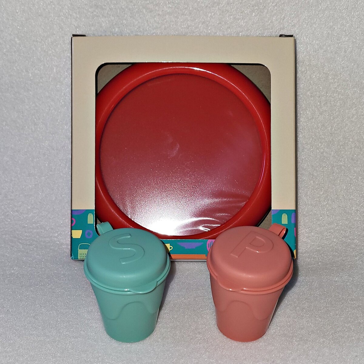 В Фиксе обратила внимание на контейнер и солонки-перечнцы. Как только я увидела этот «красный круг», возникла мысль — так это же идеальный бассейн для малышки! Так как дом я собираю только раз в году (увы, размеры не позволяют быть ему «на постоянке»), то как смотрится бассейн на придомовой территории сейчас показать не могу. Но я всё же исправляюсь:), да, согласна, лучше воспринимается наглядно! Поэтому покажу хотя бы соразмерность с куклами. В качестве моделей у меня тут маттеловская малышня. Бассейн по моей задумке предназначается для младшей дочки «барби-семейства». Это такой же пупс высотой 8 см, что и малыш в синем подгузнике на фото. Просто кто первый из коробки вылез, тот и попал на фотосессию:). Роузбадик там тоже отлично смотрится, да и Келли «влезает» по возрасту! Солонки идеально подойдут по ра
