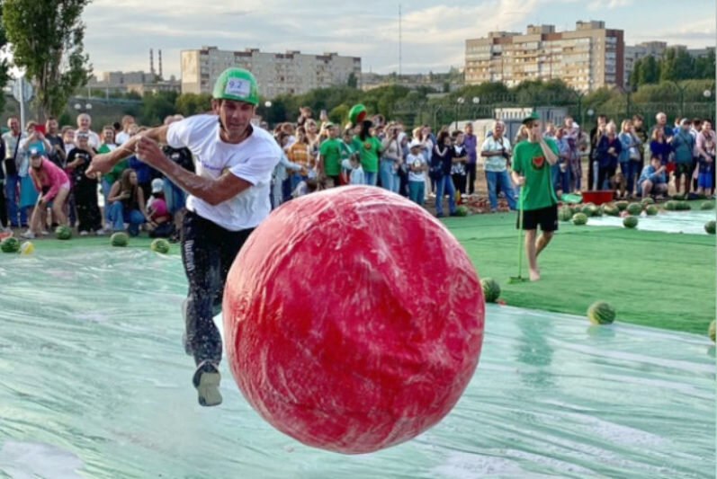 В Камышине в рамках Арбузного фестиваля состоялись «Большие арбузные гонки». В этом году в них приняли участие шесть команд, которые представляли Камышин, Москву, Санкт-Петербург и Волгоград. Участникам предстояло не только показать ловкость и находчивость, но и продемонстрировать настоящий командный дух (необходимо было прочитать речёвку с мини-представлением!).