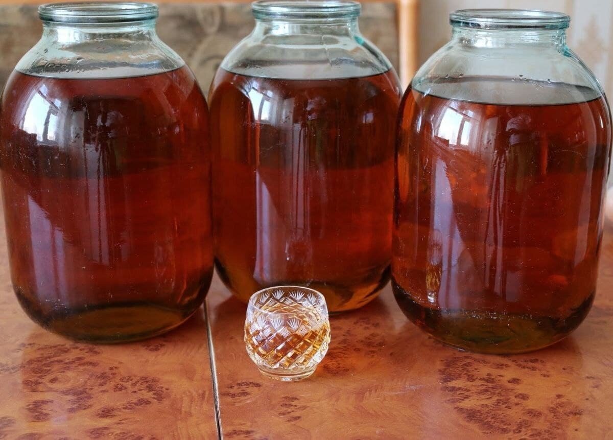 Ингредиенты:👇🏻 ▫️водка - 3 литра, ▫️измельченная кора дуба - 1 ч.л, ▫️сухая чайная листовая заварка - 1 ч.л, ▫️растворимый кофе - 1 ч.л, ▫️сахар - 1 ч.л, ▫️сода - 1/2 ч.л, ▫️ванилин — на кончике ножа, ▫️черный перец горошком - 3 шт, ▫️лавровый лист - 2 шт, ▫️2 шт. гвоздики, ▫️5 шт. изюма, ▫️1 шт. чернослива, ▫️4 зерна кориандра (раздавить ножом). Способ приготовления:👍 Последовательно засыпаем все ингредиенты в большую кастрюлю из нержавейки. Заливаем водку в кастрюлю и ставим на маленький огонь. Закрываем крышкой и ждем до момента закипания. Отверстие в крышке, чтобы не терять «градусы», залепляем хлебным мякишем. Когда жидкость подходит к точке кипения — выключаем плиту и оставляем коньяк остывать. Кипятить этот напиток нельзя. Собственно, это самый сложный и ответственный момент во всем рецепте приготовления домашнего коньяка. Остывший состав фильтруем через полотенце или марлю и разливаем в емкости.