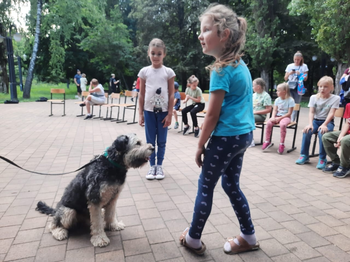 Подъём по будильнику не омрачит выходной, если на день запланировано много интересных дел. Вот и сегодня проснулись, собрались, погуляли, поели, а после мы с Филей поехали в Белгородский Дворец детского творчества на День открытых дверей. Ещё будучи школьницей, я ездила туда заниматься с Гердой. С Филей же мы иногда приходим туда к его куратору Ольге Владимировне. Именно Ольга Владимировна и предложила Филе (а заодно и мне) выступить на мероприятии. Люди, люди, люди- всё, как любит Филюха! До выхода к зрителям сидели в кабинете. На улице было очень уж жарко! А потом включили музыку, и Филя со своей напарницей Эшли пошли демонстрировать свои таланты. Мой бородатый друг в этот раз очень порадовал: хорошо выполнял команды и даже ни разу не удрал! После выступления через парк пошли с Филей на остановку. Приехали домой, немного передохнули и отправились дальше по делам. Надо было вернуть Ольге Владимировне машинку для стрижки собак, подарки от нашей помощницы для её подопечных и немного