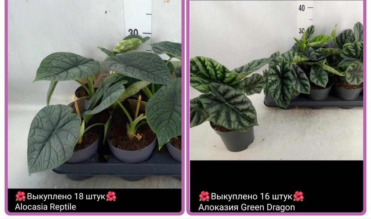 Посмотрела новые предложения из Голландии и вот на что обратила внимание. Алоказия Мело стала называться Reptile/Рептилией. Такая же история с алоказией Синуата. Теперь ее обозвали Green Dragon/Зелёный дракон. Смех просто! Расчет на слабовидящую цветоманку, которой все равно, что покупать, лишь бы новенькое! Очередная попытка выдать известное растение за новый сорт Некоторые растения можно приобрести за очень демократичную цену Алоказия Ninja/Ниндзя подешевела. Ее можно купить в 9 горшке за 960 рублей. Два года назад, когда она только появилась, я покупала ее в таком же размере за 2000. Калатея Peacock/Павлин сейчас в предложении 890 рублей в 12 горшке. Года три-четыре назад одна деленка этой калатеи стоила 1500. Филодендрон Billitae/Биллитае предлагают в 12 горшке за 890 рублей. Полтора года назад меньше, чем 2000 его было не купить. Филодендрон Ring of Fire/Ринг оф файер можно купить в 12 горшке за 1650 рублей, два-три года назад ценник на такое растение был 4000. Сейч