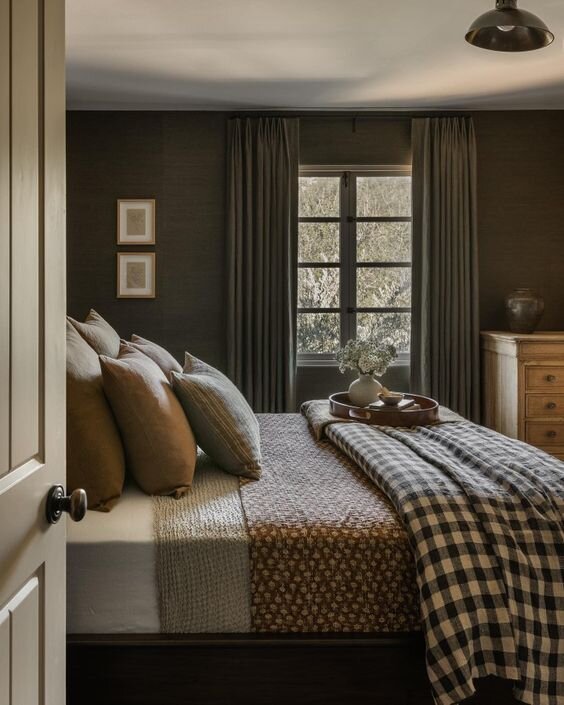 Часто принято считать, тёмный интерьер "съедает" пространство, становится мрачным и не уютным. С этим я хочу поспорить и опровергнуть это мнение! Не уютным может быть любой интерьер, если правильно не подобрать оттенки и не учесть грамотное освещение. Но сейчас поговорим про тёмные пространства: Фоном может стать насыщенный тёмно-зеленый цвет - он в свою создаёт ощущения природы, напоминая лес! С синим тёмным оттенком стоит быть аккуратнее, так как он считается холодным оттенком, поэтому разбавить его также стоит другими более тёплыми и светлыми, чтобы создать баланс и максимальный уют. Ещё, лучше всего синие стены смотрятся на контрасте с горчичными, терракотовым, фуксия и другими насыщенными тонами в предметах мебели и декоре! Тёмные оттенки всегда придают некой загадочности и глубины, что где-то там за стеной можно провалиться, как в сказках, и важно просто не поддерживать тёмные стены такими же тёмными коврами, картинами или подушками на черном диване, а наоборот создавать баланс,