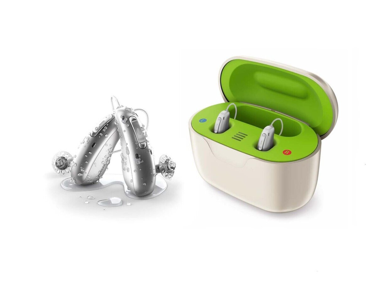Идеальной альтернативой слуховым аппаратам на батарейках является покупка перезаряжаемых устройств. Перезаряжаемые слуховые аппараты Phonak - первые, оснащённые специально разработанной встроенной литий-ионной аккумуляторной батареей, которая обеспечивает прослушивание в течение одного дня, включая неограниченную потоковую передачу. Требуется всего два часа зарядки. Если вы спешите, вы можете рассчитывать на короткую 15-минутную зарядку, которая обеспечит вам до трёх часов полной работы устройства. Они обладают на 40 процентов большей мощностью, чем обычные аккумуляторные батареи.