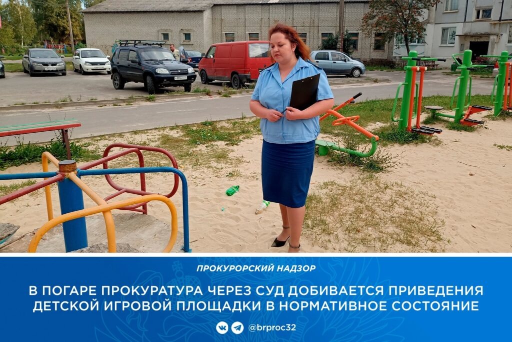 Прокуратура Погарского района проверила исполнение законодательства об охране жизни и здоровья детей при содержании игровых площадок. Об этом сообщает пресс-служба надзорного ведомства Брянской области. Установлено, что в Погар по улице 2-й Квартал расположена площадка с элементами уличного игрового оборудования. Однако вопреки требованиям закона и государственных стандартов ГОСТа отдельные элементы качелей и каруселей изношены, имеют неровные края, сколы. На качелях с лодочкой и качелях-пружине в виде лошади выступают болтовые соединения. Также имеются оголенные бетонные основания оборудования. Из-за неполного устранения нарушений по ранее внесенному представлению, прокуратура обратилась в суд с требованием обязать управляющую компанию привести детскую площадку в соответствие с требованиями стандартов. Иск находится на рассмотрении. В Погаре Брянской области нашли опасную детскую площадку