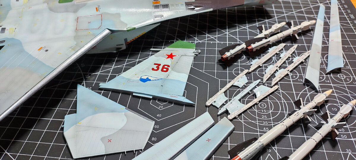 Глава шестая - "Заключение" Продолжаю сборку знаменитого самолета-истребителя Су-27 ранний от компании Hobby boss. После очень продолжительного отпуска и возобновил работу над летаблом. Декали😣....... для меня это самое суровое испытание при сборке авиации , особенно в 48 масштабе. Их много ,нет, пожалуй ну очень много. В среднем на самолет уходит около 2-х недель что бы нанести декали. Работаю по принципу (делю самолет на 4 части и одна часть один день, день просушка и отдых, что бы глаз не замылился). Ну и далее , смывка, наношу полностью и через час полтора снимаю излишки а после полного высыхания(обычно оставляю на ночь) начинаю тщательно так сказать вымывать. Остается собрать модель окончательно , все поставить на свои места и провести небольшую фотосессию. Сборкой данной модели доволен, было с чем поработать и отточить свой навык, набраться опыта. Модель не очень сложная но требует внимательности. Если собирать 100% копию то афтермаркета нужно в два раза больше( одни сопла сра