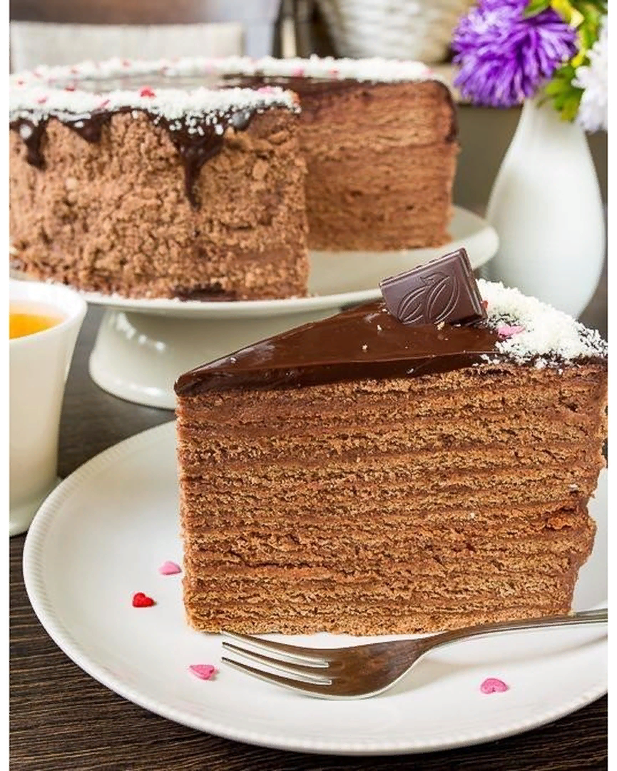 ⠀ Для теста: ⠀ Для крема: ⠀ Для ганаша: ⠀ Из 500мл сливок и 200гр шоколада приготовить ганаш. Шоколад рекомендую или итальянский или бельгийский, не магазинный! Шоколад и сливки топим вместе на водяной бане или в микроволновке. Хорошо взбиваем венчиком или блендером, пока масса не станет глянцевой. Оставить в холоде мин на 4 часа для стабилизации.⠀ Готовим тесто. Соединяем в сотейнике сахар, мед и сливочное масло. Ставим на огонь и греем, помешивая, пока масло и сахар не растают. Снимаем с огня и добавляем соду.