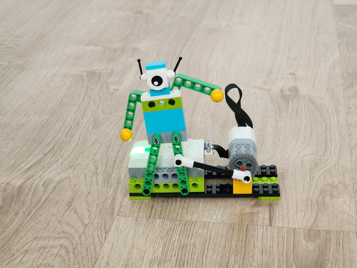Чтобы не останавливаться на достигнутом, но закрепить успех, наш инженер решил собрать еще одну модель без инструкции. Он выбрал модель танцора. Все выглядело безоблачно. Правда, ровно до момента запуска. Двигатель отказался вращаться. Мое вмешательство только усугубило проблему. Я решил покинуть столько сложный проект, предварительно обругав несостоявшегося танцора. Тут стоит отметить, что сделано это было зря. Танцор не был ни в чем виноват. К чести нашего инженера должен отметить, что он не сдался и продолжил экспериментировать. К моему удивлению и радости он решил проблему и заставил двигаться танцора. С гордостью представляем результат его трудов:
