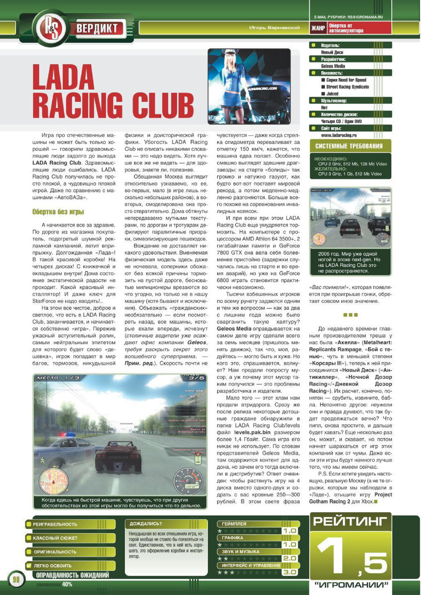 Хрестоматийный провал, а на деле — весьма ловкая махинация. Что писала «Игромания» о Lada Racing Club в год ее выхода? Конечно, ничего хорошего, но с явным налетом восхищения. Так завернуть треш в яркий фантик еще нужно было постараться! Ваши подписки и комментарии согреют меня пуще всех свечей монастырских 🌟 Пишите, что любо вам, а что нет в заметках сих, поправляйте ошибки досадные да предлагайте идеи смелые. Будем сочиняти повесть игровых лет вместе 🙏 А еще подписываетесь на канал Летописца в Telegram, где старец разыгрывает игровую классику и прочие призы славные, ценные 🙀