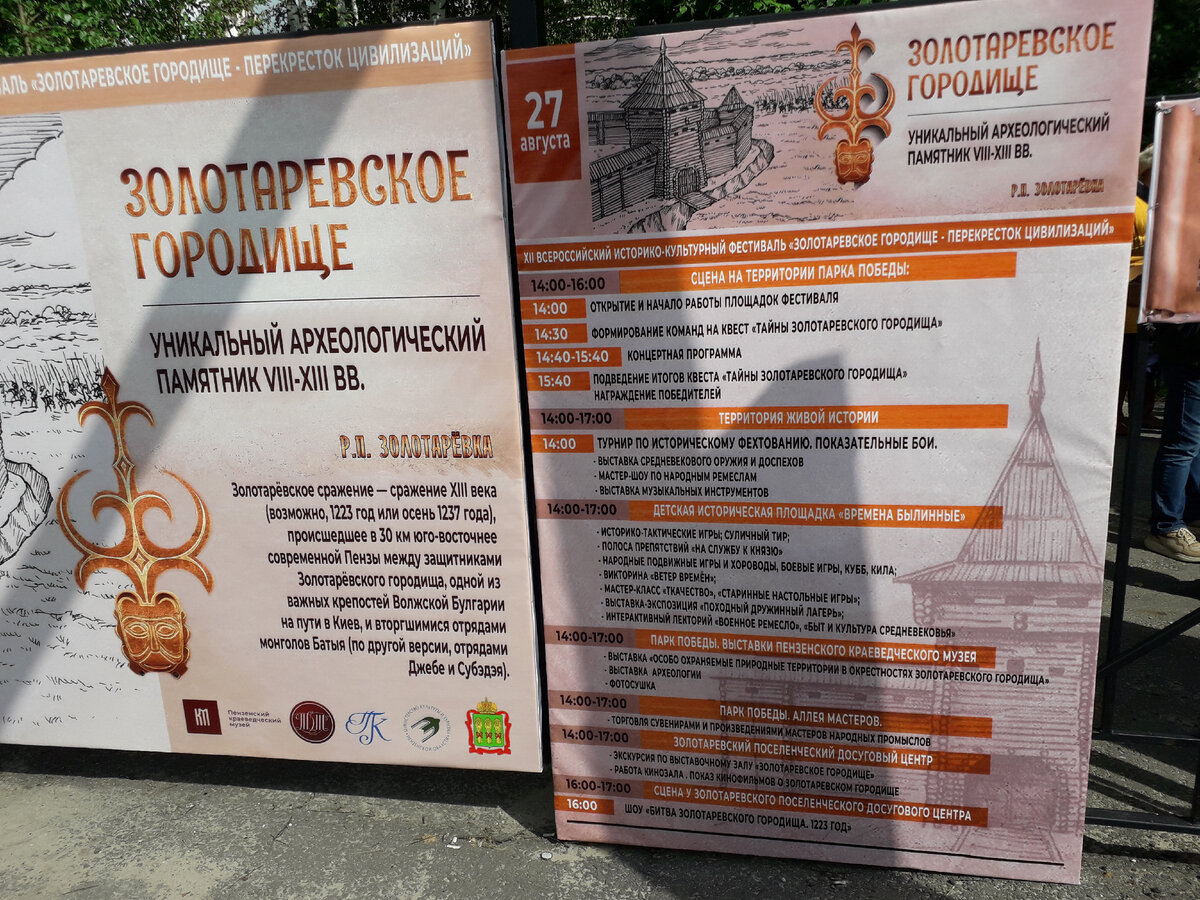 Приветствую вас, дорогие друзья! Вчера мы с девочками прикоснулись к истории😊... немного окунулись в мир древних славян 😊 и не только славян, а вообще народов, которые издревле населяли наш регион. Сказать, что эта тема меня интересует - не сказать ничего! История ещё в школе была моим любимым предметом, особенно история России и Древней Руси. И, возможно, если я бы я вернулась в прошлое, возможно, выбрала бы себе совсем другую профессию и образование 😊. Но теперь уже что есть, то есть... Итак, вчера в Золотарёвке, в Парке Победы, состоялся 12-й Всероссийский историко-культурный фестиваль "Золотарёвское городище - перекрёсток цивилизаций". Слышали о таком? Дело в том, что наш посёлок известен на весь мир благодаря одной достопримечательности. Это - древнее городище, найдено которое было в 1882-ом году учёным Ф.Ф. Чекалиным. Грандиозные раскопки на этом месте начались уже после 1952-го года археологом Р.М. Полесских. Следующий, третий этап исследований, осуществлялся в 90-х года