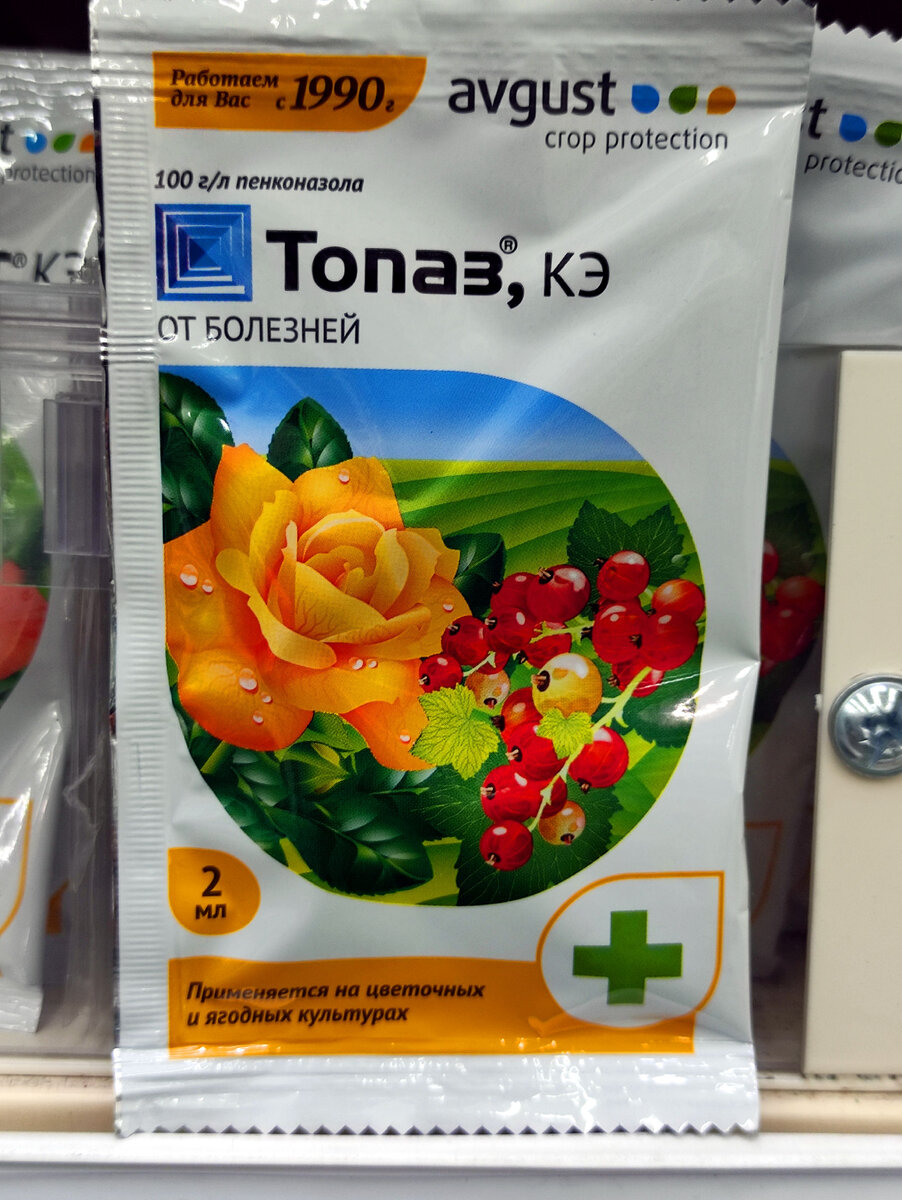 Немного о горячо любимом виноградарями препарате Топаз. Его допустимо смешивать с другими фунгицидами или инсектицидами, обладающими нейтральной реакцией Например, железный или медный купорос. Топаз хорошо совместим с любыми минеральными удобрениями. Кроме того, он хорошо совместим с препаратами Ридомил Голд, Купросат, СКОР, Топсин-М, Актара, Хорус, Циркон, Алатар и многими другими. Применив Топаз с Ридомил Голдом, Вы одновременно защитите растения и от милдью, и от оидиума.