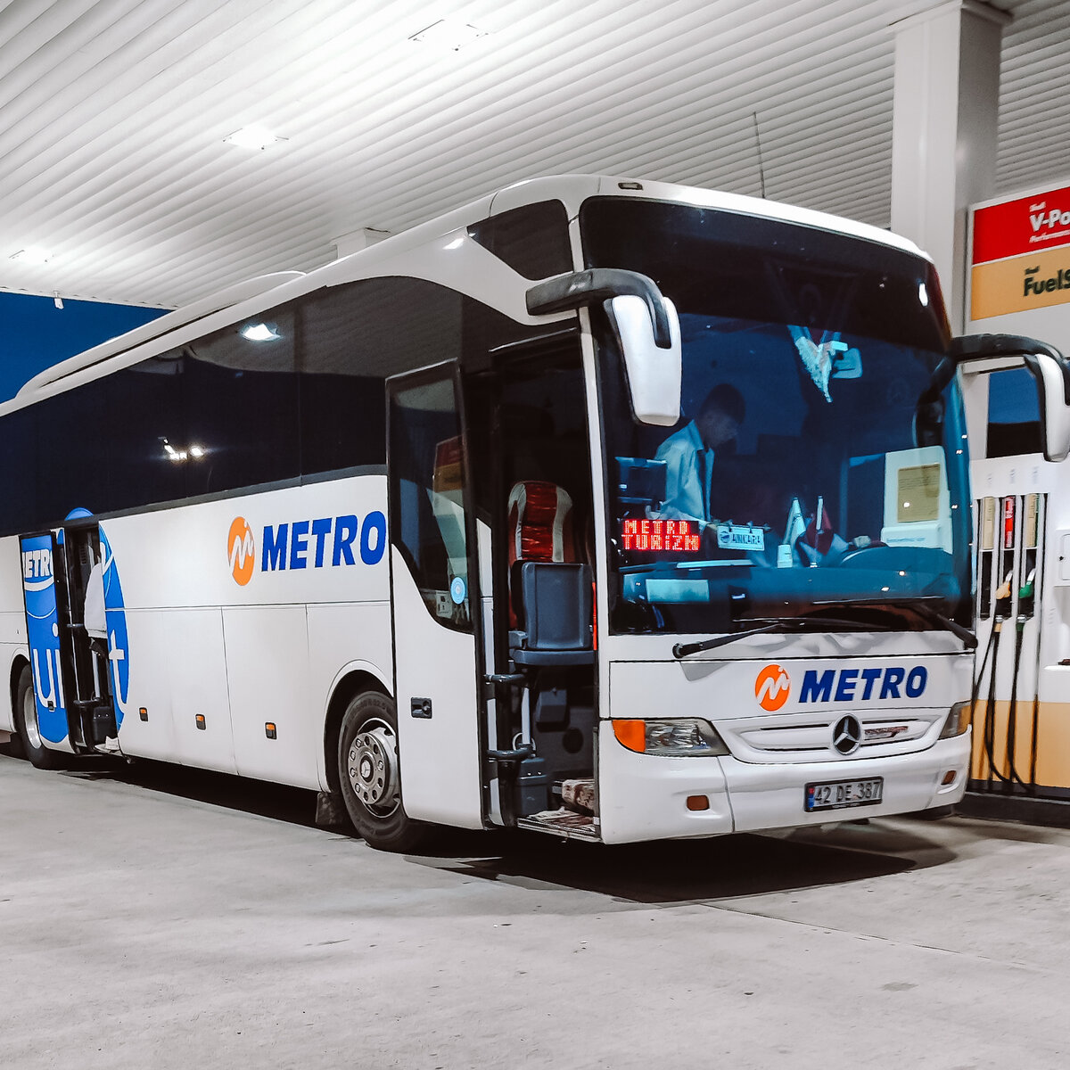 Вот хочется выделить этому отдельную статью, потому как автобусы и сервис сильно отличаются от тех, к которым мы привыкли на родине. Ехали на рейсовом автобусе мы в Анкару, столицу Турецкой республики. Есть в Турции несколько крупных пассажирских перевозчиков, выбор которых стоит уже за пассажирами. Офисы каждого из них находятся на всех автовокзалах страны. Наш выбор пал на перевозчика "Метро", так как мы видели много их автобусов во время путешествий по Грузии (есть у них рейсы в Батуми) и по самой Турции. Да и в интернете много читали обзоров по Турции и это название попадалось. Билеты на автобус приобретали через сайт. Сразу на сайте большим отличием от наших автобусов было то, что в автобусе один ряд кресел двойные, спаренные, а один ряд с одним креслом. И на сайте, приобретая билеты, мы обязательно указываем свой пол. На одинарное кресло может сесть любой пассажир, а вот на двойное, если пассажиры разного пола и не знакомы между собой, то приобрести билеты не смогут. Это национал