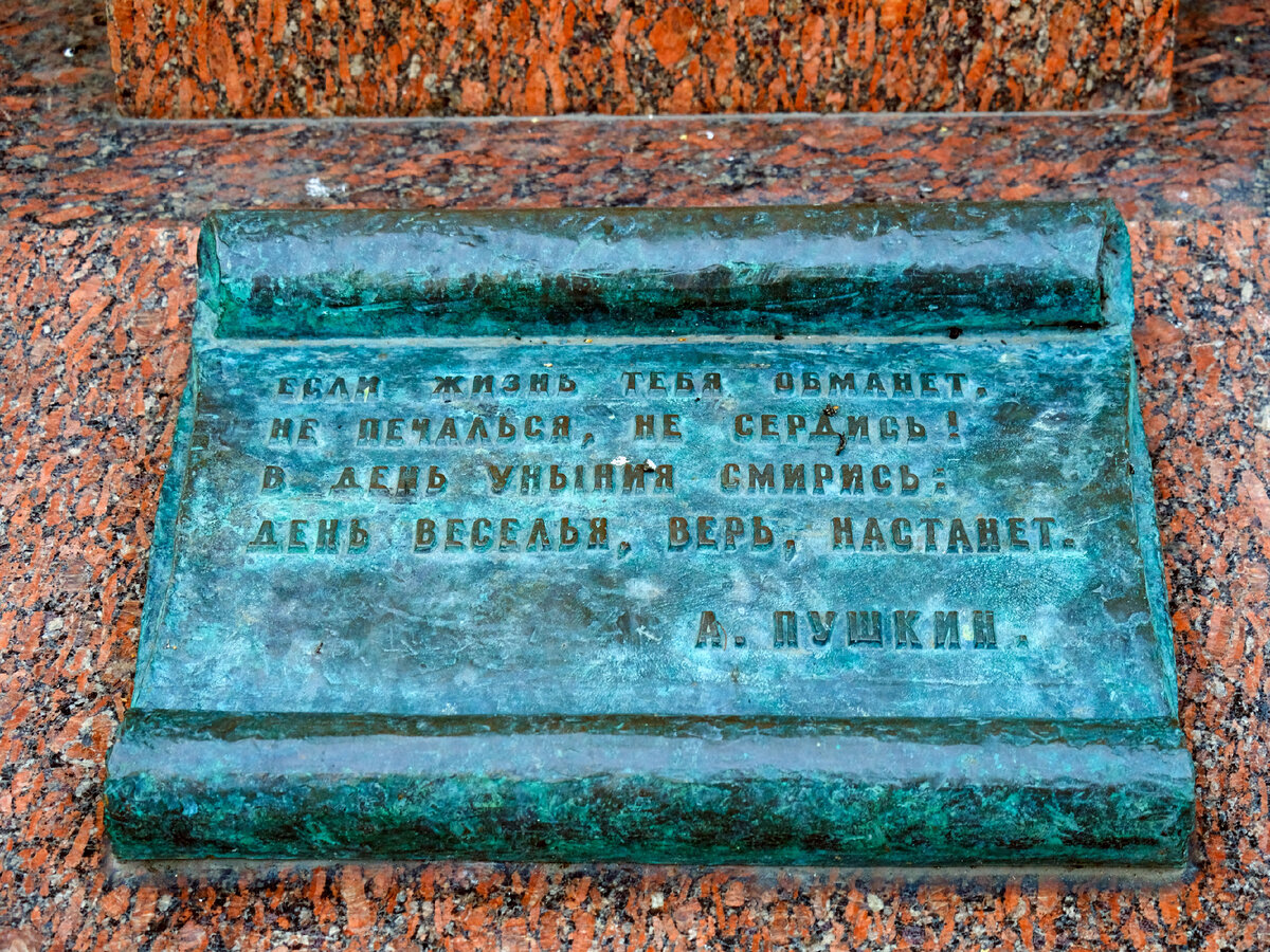 Если жизнь тебя обманет, Не печалься, не сердись! В день уныния смирись: День веселья, верь, настанет. (А.С. Пушкин) Эти строки поэта выбиты на постаменте памятника Пушкина на Спасопесковской площади (метро "Смоленская") Памятник установлен 29 сентября 1993 года в Пушкинском сквере. Сквер был устроен в 1871 г на средства Н.А. Львова, о чём мы писали в публикации про особняк в Спасопесковском переулке. Таким образом, сквер действительно стал Пушкинским Автор памятника - скульптор Юрий Динес Памятник сооружён на средства австрийского историка Герхарда Ягшитца из Вены и А/О "Каприто" Спасибо, что дочитали. Гуляйте больше по Москве, особенно пока еще погода позволяет, узнавайте город, забирайтесь в незнакомые переулки, приходите и на наши экскурсии