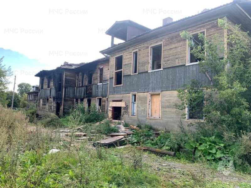 В воскресенье, 27 августа, в центре Котласа произошел крупный пожар в нежилом деревянном доме по улице Садовая. Вызов в экстренные службы поступил в 14:18 от очевидцев. Люди сообщали, что наблюдают сильный огонь уже на половине дома. Первые пожарные ПЧ-87 прибыли через одну минуту после сигнала о возгорании. К тому времени создалась угроза распространения огня по всему дому. Был объявлен ранг пожара 1 бис. Направлены дополнительные пожарно-спасательные подразделения. На месте работал личный состав ПЧ-87, 16 ПСЧ, 13 ПСЧ, ОП 16 ПСЧ. Работало 4 звена ГДЗС. Пожар ликвидирован с установкой автоцистерн на пожарный гидрант в 100 метрах и на пожарный водоем в 120 метрах от пожара. В результате пожара повреждена и разобрана кровля на половине площади дома, повреждены квартиры на первом и втором этажах первого подъезда. Предполагаемая причина – неосторожное обращение с огнем неустановленных лиц. Пострадавших нет. Фото ГУ МЧС России по Архангельской области