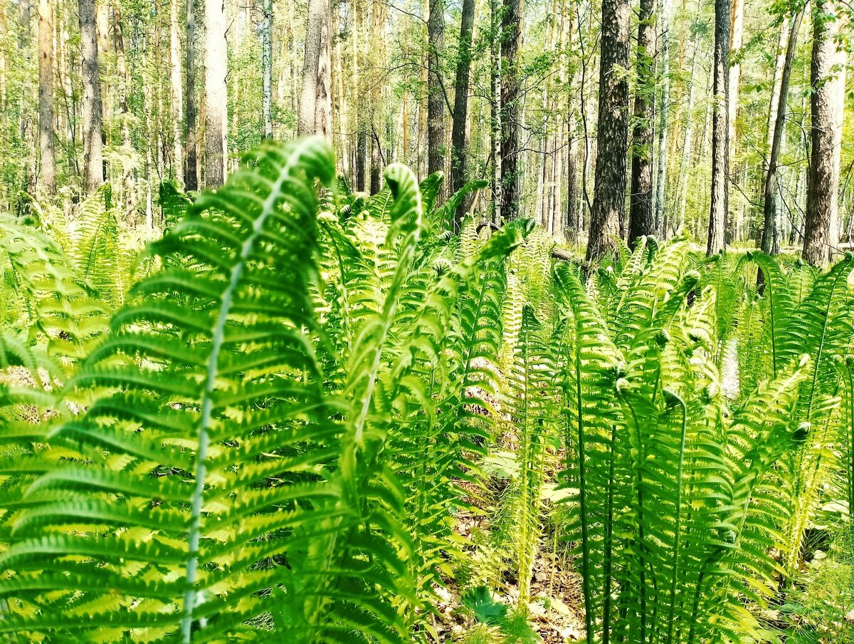 Также влажные места любит папоротник Страусник Обыкновенный. В лесопарке его целые заросли.