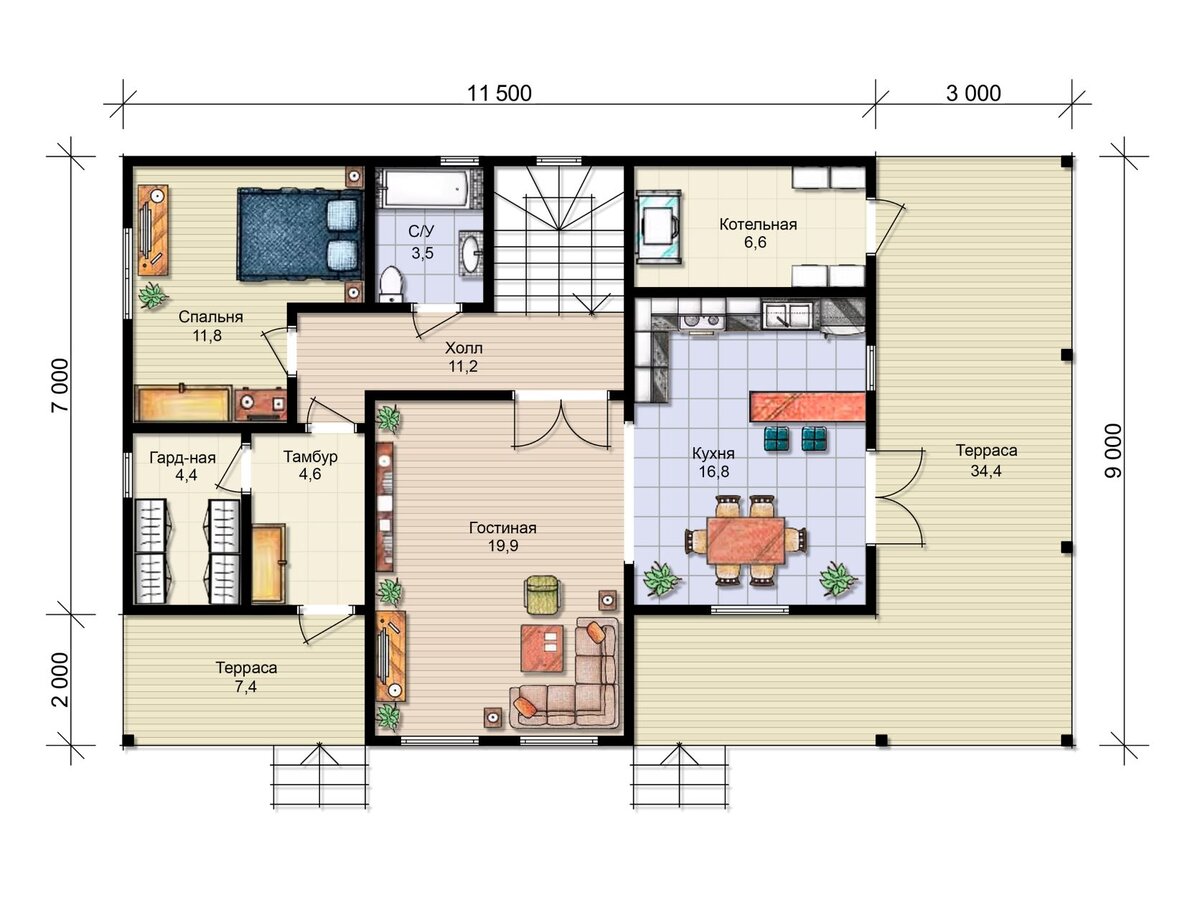 Двухэтажный дом по проекту Нева. ДП "Парус", Наро-Фоминский р-н, Московская обл. Размеры дома - 11,5х7м + терраса Площадь - 185 м2 Спален - 5 Высота потолков на 1 этаже - 2,8м Высота потолков на 2 этаже - 1,7 -2,5м Срок строительства - 8 недель Строим дома в Московской и Ленинградской областях. Планировка 1 этажа Планировка 2 этажа Визуализация дома Монтаж фундамента Обвязка фундамента, монтаж чернового пола Защитная сетка от грызунов, монтаж ветрозащиты Строительство каркаса 1 этажа Монтаж балок межэтажного перекрытия Комплектация дома: