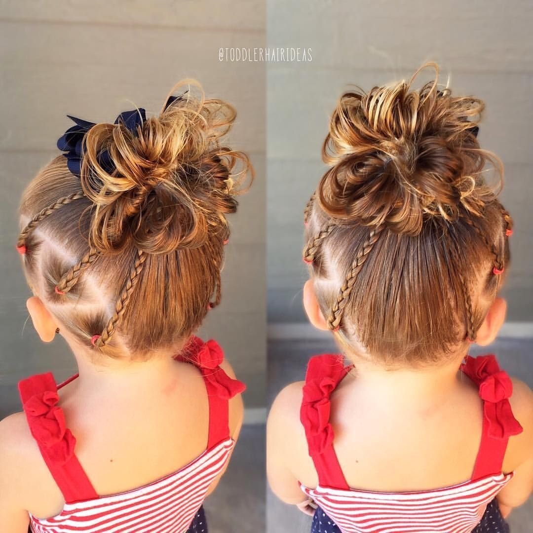 Эта прическа идеально подходит для повседневной жизни и праздников для девочек. Просто украсьте ее стразами и красивыми заколками. Смочите локоны водой (прическу легче создавать, если волосы слегка влажные). Разделите пучки волос поровну и снова разделите по бокам на две части. Все пряди волос должны быть одинаковыми. Оставшиеся секции волос следует скрутить или собрать вместе. Каждый пучок волос перекручивается на одну сторону, чтобы получилась плетенка. В завершение закрепить заколкой или резинкой. Можно добавить различные аксессуары. Это уже мир фантазий. Эта прическа прекрасно подойдет для праздничного дня в детском саду.