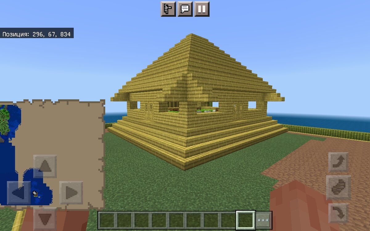 Здравствуйте, читатели. Сегодня я выпущу статью по старой теме, которую уже поднимал в этом канале. Как вы поняли, это майнкрафт. Итак начну. Сегодня я опишу вот этот домик. Точнее остров, на котором он стоит. Я летел вдоль края карты и нашёл остров. Именно в его поисках я и путешествовал. Остров был маленький и не примечательный. Я увеличил его в размерах с помощью блоков грязи. Он стал привычной для меня квадратной формы. Чаще всего я строю что-либо именно на таких островах. Затем возвёл вокруг него забор из бамбука. Точнее будет сказать стену. Она проходит вокруг всего острова и возвышается на дваблока выше уровня моря. Также рядом с этим островом есть второй, но по меньше. На нём я сделал смотровой пункт. Вот так вот она выглядит. Забраться на эту башню без помощи лестницы невозможно. Поэтому от монстров она полностью защищена. Пол на этом острове сделан из бамбуковой мозайки. Затем идут блоки бамбука. После - плиты из бамбуковой мозайки. И наконец бетон чёрного и белого
