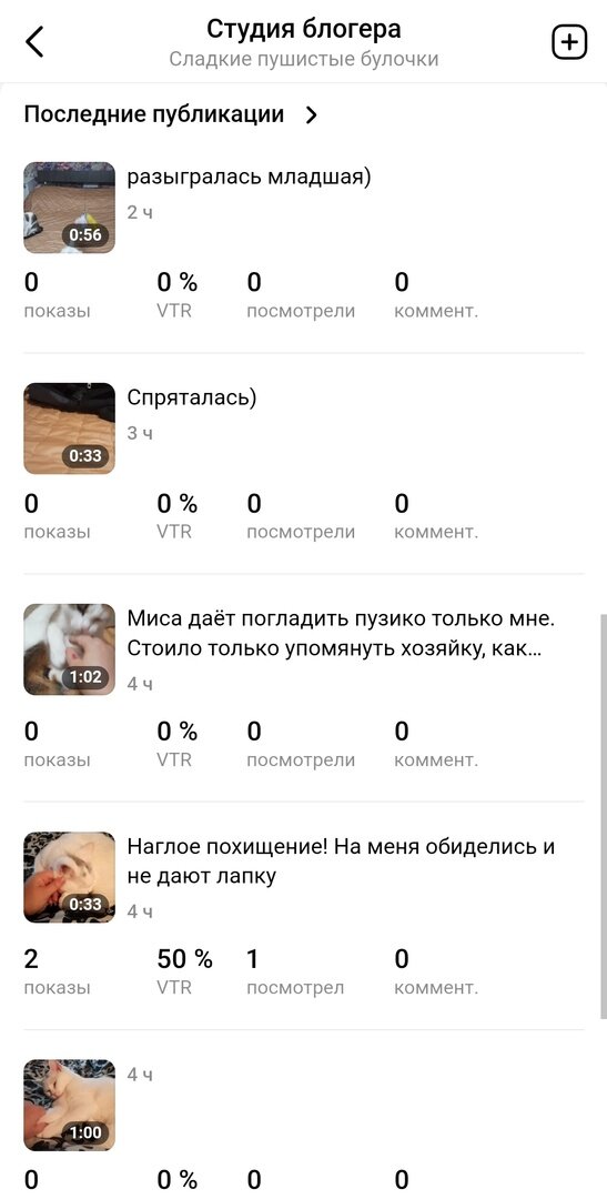 После смены монетизации с 1 августа, мой канал заработал позорные 580,53 руб. Очень печально, кстати. Но речь не о том. Изменились и условия подключения монетизации для новых каналов: 30 часов просмотров от подписчиков. Крутая цифра. Я не думала о создании канала: мне хватает уже существующих 3-х, на один из которых я совсем забила из-за отсутствия на него времени. Но сегодня, переходя с канала на канал, я случайно создала новый, просто нажав не на ту кнопку для входа через VK, а не через Яндекс. И пришла мысль: почему бы не провести эксперимент? Создам новый канал, буду постить ролики с котиками и морскими свинками. Котиков е все любят. Заполнила описание канала и добавила 5 роликов. Ссылку на канал не даю: хочу честный эксперимент своими силами. Много времени ведение канала не потребует, контент из кошек всегда под рукой. Зато интересно. Буду держать в курсе событий. Сейчас о результатах судить рано, но скажу, что спустя 4 часа после первой публикации, показов 2 штуки на все 5 роли