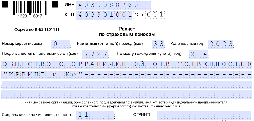 Начиная с января 2023 года расчет по страховым взносам КНД 1151111, сдается на новом бланке, утверждённом приложением № 1 к приказу ФНС России от 29.09.2022 N ЕД-7-11/878@.