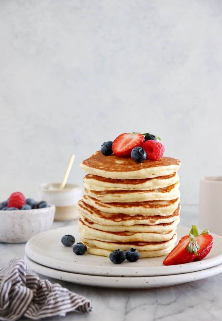 Часто задаваемые вопросы Как хранить, замораживать и разогревать блины? Эти блины хранятся в холодильнике в закрытой посуде два-три дня. Если вы хотите их заморозить, я рекомендую заморозить блины в два этапа: заморозьте их отдельно в один слой на противне, застеленном пергаментной бумагой, а затем переложите в пакет с застежкой-молнией, пригодный для замораживания. Это лучший способ гарантировать, что ваши блины не слипнутся. Альтернативно, вы можете сложить их стопкой и положить между ними лист пергаментной бумаги, а затем завернуть стопку блинов в фольгу. Чтобы разогреть блины, просто поджарьте их прямо из замороженного состояния или разогрейте в микроволновой печи примерно от 30 секунд до одной минуты.