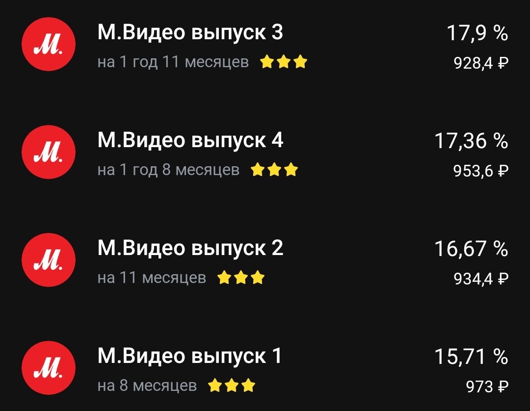 🍎Почему продают облигации М.Видео? Что с ними не так? Начнем с того, что облигации М.Видео считались достаточно надежными бумагами, которые при этом платят достаточно высокие купоны. Рейтинг А, А- , при этом доходность к погашению была в районе 12-13 процентов. Все так, но ставку то повысили до 12 процентов, теперь ОФЗ могут предложить доходности выше 11 процентов. А риска по этим бумагам в разы ( если не в десятки раз) меньше. Где премия за риск? Добавим к этому не самый лучший отчет и вот… Теперь доходность выше 17 процентов. Теперь это уже доходность ВДО, тогда и рейтинг должен быть соответствующий ( ВВВ например). 💡Почему цены упали только сегодня? Видимо за выходные люди почитали отчет, подумали и стали действовать. Я вот например вообще решение по данным бумагам еще не принял, хотя долю в облигационном портфеле они у меня занимают большую ( немного меньше 10 процентов). 💡А что в отчете? Многие уже писали, но я повторюсь. Выручка в 1 полугодии упала, EBITDA выросла на 5