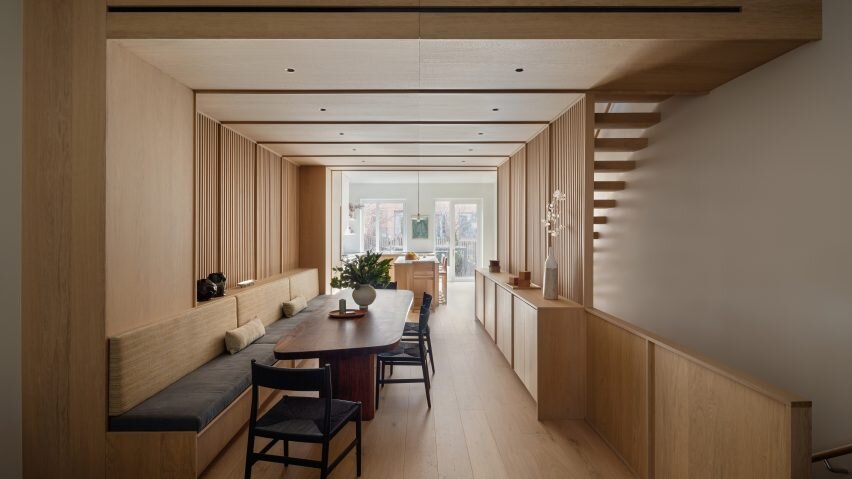 Дизайн интерьера с использованием дубовых панелей и решетчатых ширм на примере таунхауса Кэрролл Гарденс в Бруклине