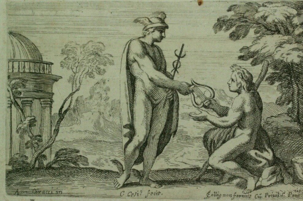 Кадуцей. Посох обвитый двумя змеями с крыльями наверху. Символ гармоничного взаимодействия противоборствующих сил. Даже здесь не забуду упомянуть про четыре стихии, потому что точка зрения Елены Блаватской кажется мне достаточно интересной. Она видит кадуцей так: посох — земля, крылья — воздух, две змеи — огонь и вода. Чуть позже это нам пригодится. История посоха зачинается в древнегреческой мифологии. Где Гермес (эквивалентный древнеримскому Меркурию) в возрасте четырёх дней отроду увёл у Апполона стадо коров, по пути ещё успев смастерить себе лиру из черепашьего панциря и овечьих кишек. В итоге батюшка Зевс все разрулил, и Гермесу было велено вернуть коров обратно, однако Апполону настолько приглянулась Гермесова лира, что тот вдобавок решил с ним обменяться и вручил взамен лиры свой посох. И коровы на базе, и бартер удачный, мир, дружба, кадуцей. Точнее, пока ещё просто посох, а вот уже после, чтобы убедиться в словах Апполона о том, что это волшебный жезл изобилия и здоровья, Гер