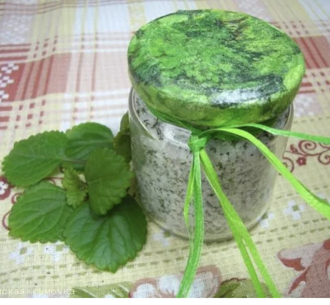 Рецепт приготовления мятной соли: Ингредиенты: - 1 столовая ложка сушеной мяты - 1/4 чашки морской соли Инструкции: 1. В мельнице для специй или ступке измельчите сушеную мяту до состояния порошка. 2. Смешайте мятный порошок с морской солью в миске. 3. Переложите полученную смесь в стеклянную банку с крышкой и хорошо закройте. 4. Храните мятную соль в прохладном и сухом месте. Область применения мятной соли: - Мятная соль может использоваться в кулинарии для ароматизации и придания освежающего вкуса различным блюдам. Она отлично сочетается с рыбой, морепродуктами, овощами, салатами и соусами. - Мятная соль может быть использована для приготовления мятного чая или напитков. Добавьте немного соли в чашку горячего чая или лимонада для придания особого вкуса. - Мятная соль также может использоваться в косметических процедурах. Ее можно добавить в ванну для создания освежающего и расслабляющего эффекта на кожу. - Мятная соль может быть использована в ароматерапии. Несколько капель эфирн