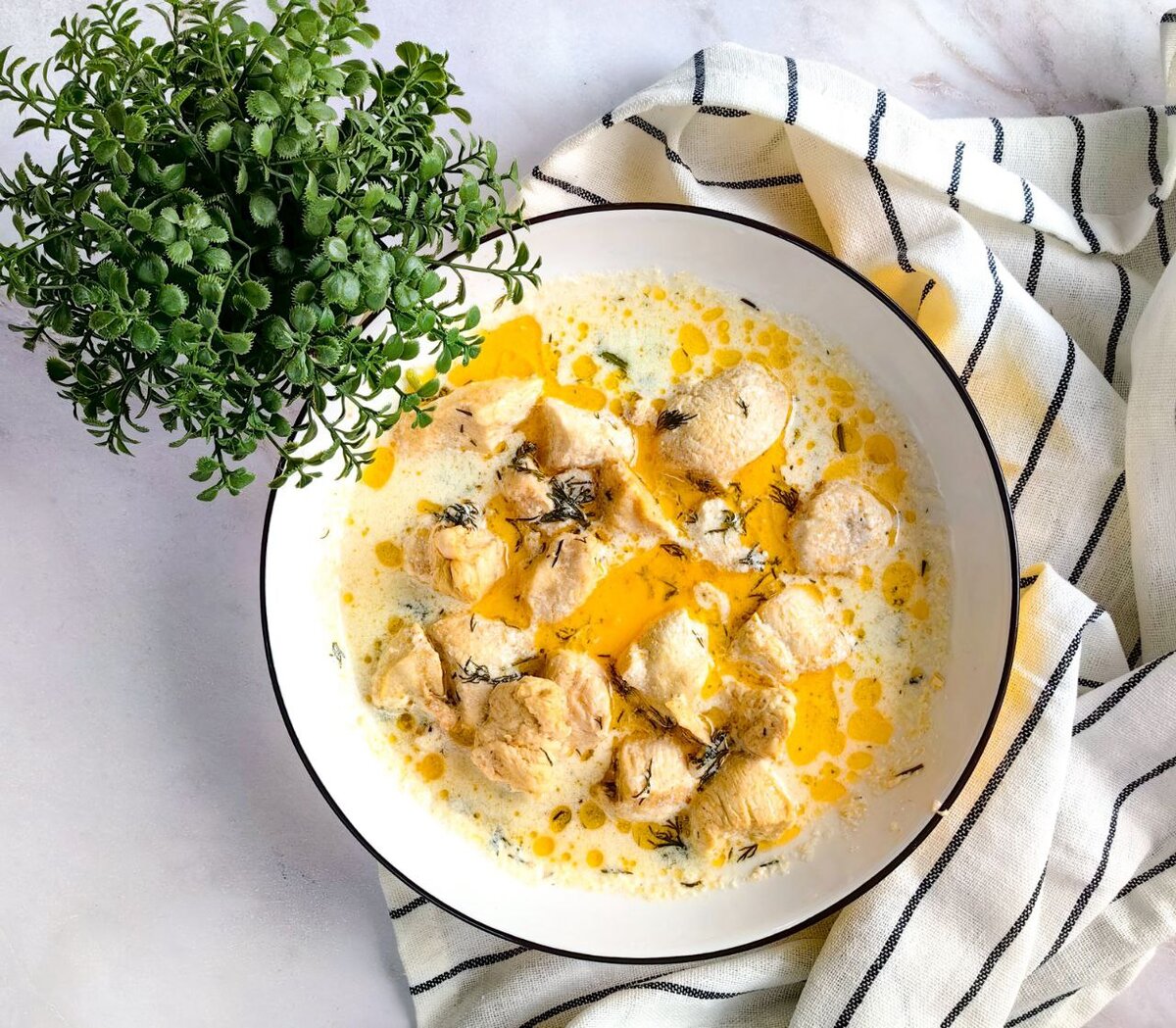 Аромат и насыщенный сливочный вкус этого блюда не оставят равнодушным никого! Этот рецепт - отличная идея, что быстро и вкусно приготовить из куриного филе. Куриное филе промыть, обсушить бумажным полотенцем и нарезать на кубики среднего размера. Выложить филе в миску, добавить паприку и хорошо перемешать. Оставить мариноваться минут на 15. Чеснок нарезать пластинами. Разогреть на сковороде растительное масло, выложить чеснок и обжаривать в течение примерно 1 минуты, после чеснок убрать. В масло выложить кусочки курицы и обжаривать в течение 6-7 минут до золотистой корочки. Влить в сковороду 100 мл воды, накрыть крышкой и тушить на слабом огне минут 15. Посолить и поперчить по вкусу. Укроп мелко нарезать, сыр натереть на крупной терке. В миску влить сливки, добавить укроп и сыр, перемешать. Влить сливки с сыром и укропом в сковороду с курицей, перемешать и готовить 5 минут. Приятного аппетита! Ингредиенты: Куриное филе - 300 г