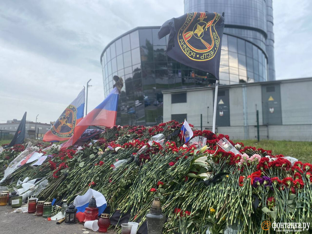 В Петербурге у бывшего «ЧВК Вагнер Центра» на Зольной улице пятый день растут горы гвоздик в память о Евгении Пригожине. Приходят сюда очень разные люди.