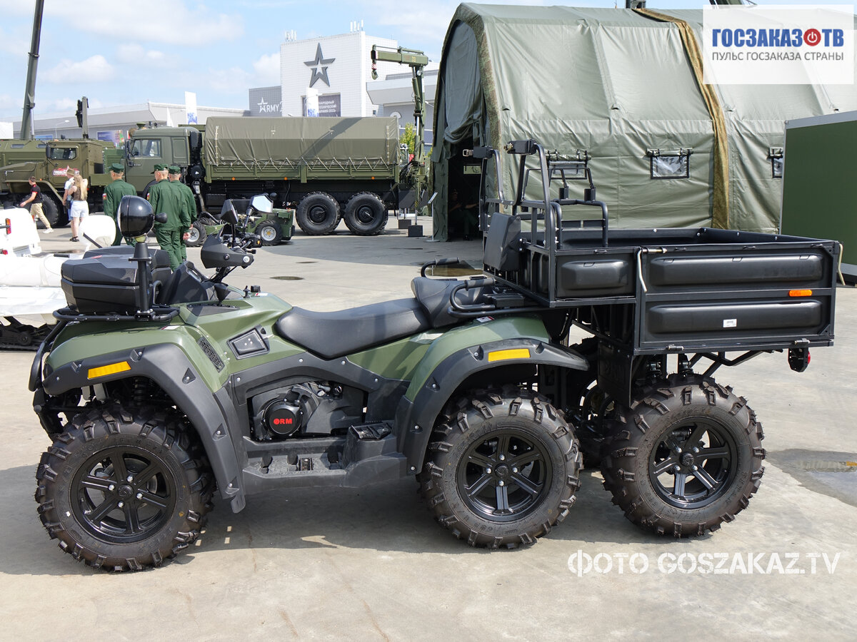 Армейский вездеход АМ1 -10 эффективно выполняет задачи дозора, разведки, рейдовых операций, а также поисково-спасательных миссий в любых климатических условиях. В 2014 году транспортное средство успешно прошло двойные испытания в условиях суровых арктических широт на территории полуострова Рыбачий и острова Котельный. Общие сведения об армейском вездеходе АМ1-10 "Русская механика" в городе Рыбинске, спроектировала и разработала военный мотовездеход под индексом АМ-1, используя в качестве базы серийную гражданскую модель РМ-500-2. Мотовездеходы производятся специально для армейских целей и обладают значительными усовершенствованиями по сравнению с гражданскими аналогами. Помимо камуфлированной окраски и наличия вооружения, военные мотовездеходы АМ-1 имеют улучшенные характеристики подвижности. Квадроциклы способны конкурировать с моторными лодками на мелководье. Их рама обладает защитным порошковым покрытием, а все электрические контакты обеспечены влагозащитой. Для преодоления различны