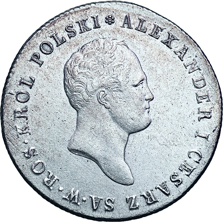 5 злотых для Польши 1817 года Император Александр I был против размещения своего портрета на российских монетах – так же, как и его отец император Павел I: представленные их Величествам пробные варианты – «с покатым лбом и выступающей нижней челюстью» у Павла и «портрет с длинной шеей» у Александра – не устроили поочередно обоих монархов. Если Павел заменил свой портрет на монетах на цитату из Ветхого Завета «НЕ НАМЪ, НЕ НАМЪ, А ИМЯНИ ТВОЕМУ», сократив библейский текст «Не нам, Господи, не нам, но имени Твоему дай славу, ради милости Твоей, ради истины Твоей» (Псалом 113:9), то Александр счел возможным ограничиться констатацией факта, написав на реверсе: «ГОСУДАРСТВЕННАЯ РОССИЙСКАЯ МОНЕТА». Однако на монетах, чеканившихся с 1816 года для обращения на территории царства Польского, Александр I счел необходимым все-таки разместить свой портрет – вероятно для того, чтобы поляки наглядно представляли себе, кто же в том доме хозяин. На разменных грошах (grosz polski) номиналом 1 грош (медь),