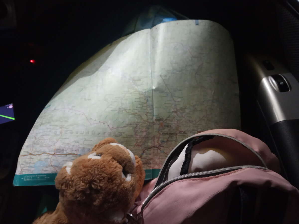 Я была штурманом и отслеживала нас по карте, параллельно показывая Бобику и Теилзу (игрушка моего любимого персонажа из вселенной Соника) где мы едем. Мама вела машину. Папа уставший спал позади нас. Сестра обсуждала с братиком происходящее за окном.