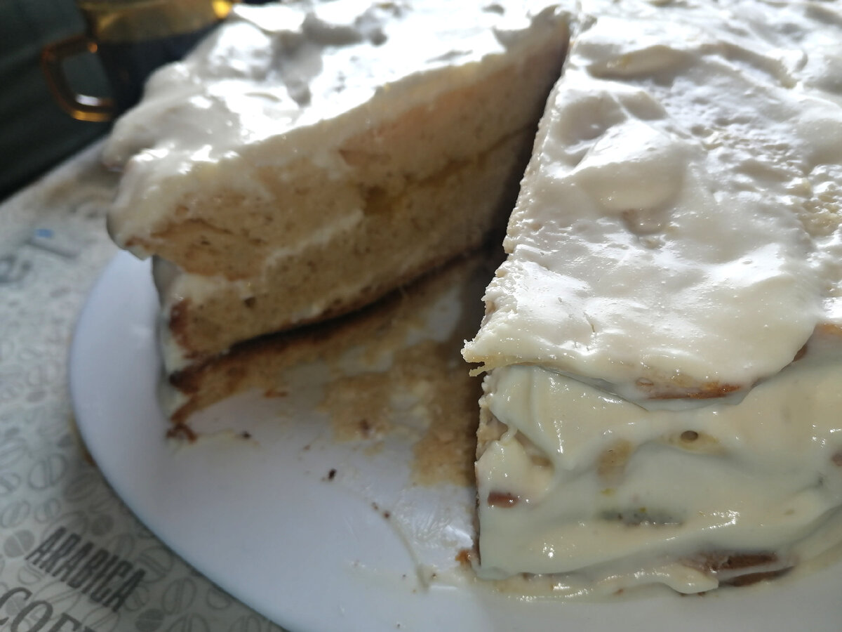 Здравствуйте, мои дорогие! Представьте себе, до меня только вчера дошло что не так в последнее время с моей выпечкой. Недавно не удалась шарлотка, в этот раз бисквит для пирога тоже получился не такой мягкий, как обычно. Подозреваю, что всё дело в муке, она же у меня стоит в контейнер пересыпанная, а я разную покупаю, и пшеничную первого сорта гораздо чаще, чем высшего, а то и второго беру, если попадается. Но второго все же заметно темнее, а первый сорт от высшего отличить, конечно, можно, но если задуматься. Чего я не сделала, белая мука и этого достаточно. Так что в этом видимо дело, не надо делать бисквитное тесто из муки первого сорта. Не стала я свой тортик никак украшать, получился совсем простой и страшненький, однако, для приготовленного спонтанно и из того, что есть дома, довольно вкусный. Хорошо, что щедро пропитывала коржи, получились гораздо лучше, чем тесто в шарлотке. Вот сейчас на завтрак чашка кофе с куском этого пирога и поедем в город по магазинам. Закупка у нас сег
