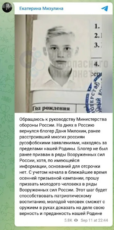 Давно ли Даня Милохин был ВИП-гостем ПМЭФ, снимал там ролики и являлся образцом успешного успеха в новой России, когда танцевал в шоу на льду в паре с прекрасной Евгенией Медведевой? Давно ли он украшал собой список российского Forbes, являя собой небывалые возможности российского медиа-капитализма, когда ничему толком не учившийся мальчик из провинциального детдома мгновенно возносится к славе и миллионам? Но случился февраль 2022 года и звездный Даня, вместо того, чтобы остаться в России с солидными контрактами и большими деньгами, присоединившись к единому патриотическому порыву, охватившему нашу эстраду от Газманова до Лепса и записывать коллаборации с SHAMAN и Тимати, подался на выход вместе с Моргенштерном. И, надо же вдруг по интернетам пронеслась весть, что юный беглец собрался вернуться. То ли соскучился, то ли поиздержался... Нет, ну Пугачева же несколько раз приезжала, и ничего, не съели. Но Пугачева - дама, да еще и в летах, а Дане-то есть, отчего осторожничать... И не з