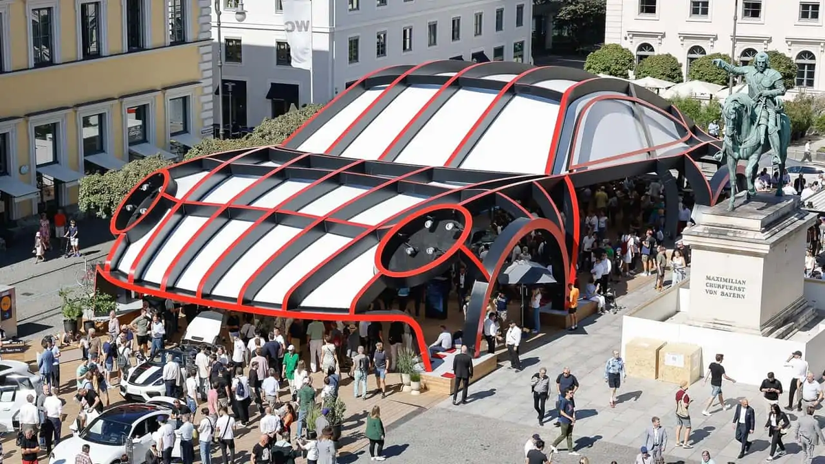 Porsche представила новинки в гигантской скульптуре 911 на автошоу IAA в Мюнхене